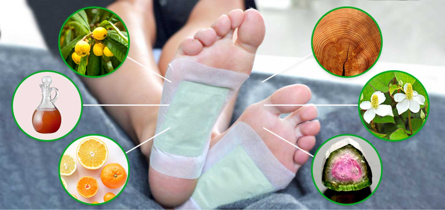 Les patchs contiennent des ingrédients naturels comme le vinaigre de bambou, la tourmaline et le vinaigre de bois qui agissent en harmonie pour éliminer les toxines du corps par la plante des pieds.